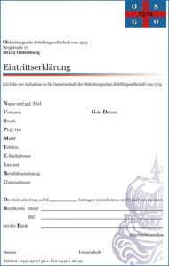 Sie möchten gern in die Gemeinschaft der Oldenburgischen Schiffergesellschaft aufgenommen werden? Hier können Sie sich die Eintrittserklärung herunterladen.